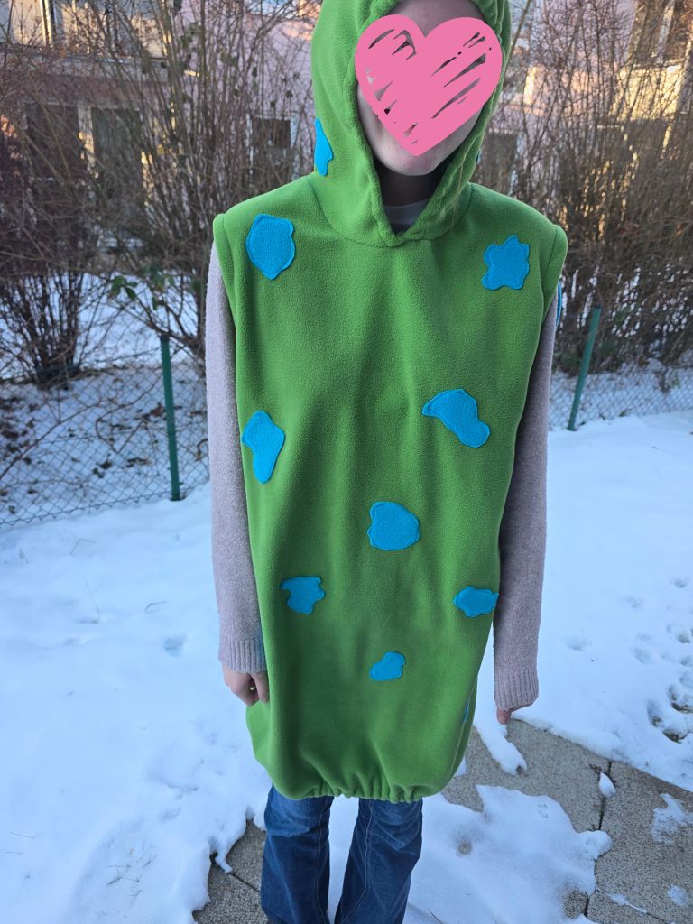 Die Inspiration für dieses Kostüm kam aus einer bekannten Kinderbuchreihe über kleine grüne Figuren, die auf Müllbergen leben und sich von Müll ernähren. Vielleicht wisst ihr sofort, welche Geschichten ich meine. Diese Figuren gibt es schon wirklich lange und mittlerweile sogar im Fernsehen.