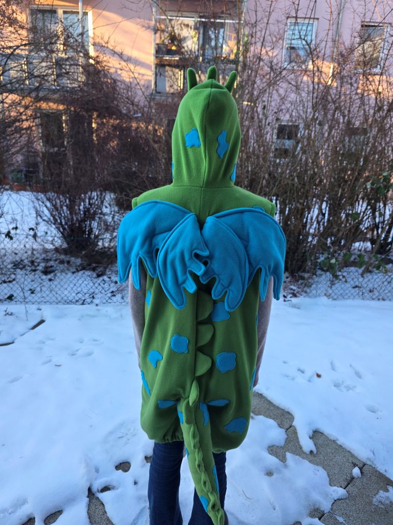 Und wer weiß – vielleicht war das ja nicht mein letztes Drachenkostüm dieser Art. Aber eins weiß ich jetzt schon, dass Kinderkostüm wird bals in meinem Etsy-Shop landen.